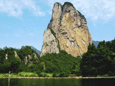 Shiwei Rock Scenic Area is located at Donggaoxiang, Hesheng Township, Yongjia County,Which is about 70km apart from Wenzhou City in the south and 25km apart from Dalongqiu Scenic Area of Mount Yandang in the east.There is open road for tourism. Characterstics: grand, unique,perilous,beautiful,quiet and abstruse. The small gorge:about 3km in length,integrates sheer pecipices and overhanging rocks,unique peaks and perilous gorges, rapid flows and deep ponds, sand beaches and meadov into a whole. The scenery is charming. The three sides of Shiwei Rock are surrounded by water ,and one peak stands from the water. Its relative height is 306m ,looks like a mast. The appearance is unique and grand.Shuixian Cave :10m in depth,6m in width and 8m in height, can hold 30 people.Shiwei Rock is ruddy and is surrounded by valleys in three sides.Its relative height is 306m,Which can be thought as No. l in China and as sky column in the South of Zhejiang. There are a cluster of other peaks facing Shiwei Rock..Because the heights of other peaks are shorter than half of the height of Shiwei Rock,it looks like that they don't dare to compare their heinghs to it."If you look up into Shiwei Rock,you will sdmire it".The momentum of Reaching to the sky can be easily seen from Shiwei Rock. Main scenic sports: Shiwei Rock, Small Gorge,Shuixian Cave,. Kylin Peak,X, Xia' ao Waterfall,General Rock,Cock Precipice,Xiangshan Mount,Pineapple Rock,Shuixiang Rock,Longwantan Forest Park and so on.